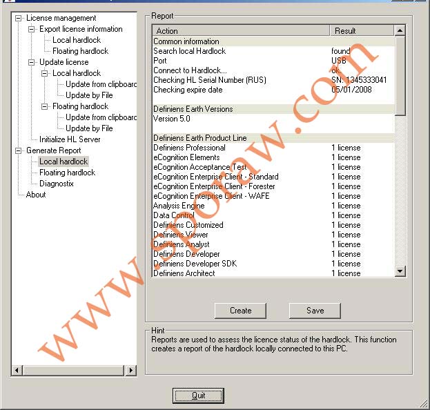 This a sample of HardLock dongle emulator for Definiens (eCognition) v5.0. This emulator allows to select a type of software: Definiens Earth or Definiens Life. It support all possible modules of software such as Definiens Professional, Cellenger Developer Studio, Analysis Engine, Data Control, eCognition Elements, eCognition Acceptance Test, eCognition Enterprise Client - Standard, eCognition Enterprise Client - Forester, Cellenger Enterprise Client - Standard, Cellenger Enterprise Client - WAFE, Definiens Customized, Definiens Viewer, Definiens Analyst, Definiens Developer, Definiens Developer SDK, Definiens Architect, Definiens eCognition Server, Definiens Engine Service/OEM.