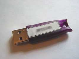 USB-ключ MemoHASP4 M1. Снабжен светодиодом, расположенным около круглого отверстия для крепления в качестве брелока, который во включенном состоянии светится, сигнализируя об активности ключа. |