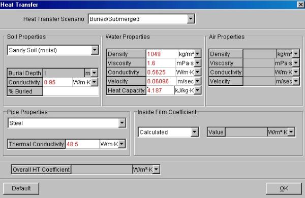 - Databases for pipe sizes, soil and insulation thermal conductivities, and pressure-loss coefficients for fittings