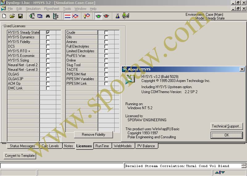 16-Apr-2004: SentineLM license for HYSYS v3.2 © AspenTech / HyproTech is generated. SentinelLM license generator enables all possible features with required amount of seats (workplaces) and required license expiration date. (Screenshots: [1] [2] [3] [4]).