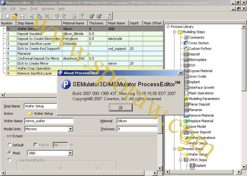 23-Nov-2008: FLEXlm license for products CoventorWare v2006: Analyzer v2006, Architect v2006, Designer v2006, Integrator v2006; and FLEXlm license for programs SEMulator3D v2007.000.1389 GOLD, MEMulator v2007.000.1389 GOLD are generated. FLEXlm license generator enables all possible features with required amount of seats (workplaces) and required license expiration date. (Screenshots for SEMulator3D v2007, MEMulator v2007: [1] [2] [3] [4] [5] [6] [7]).